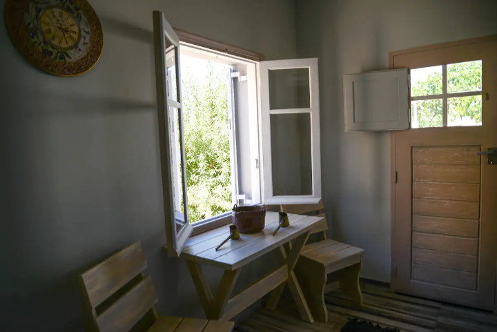 Airport Pickup, Large living room, TV, 32″ HDTV with Amazon Prime Video, Netflix, Wifi, Private Bedroom, Cradle, Air Conditioning ( Portable ), First aid kit, Area to work, Independent Entrance, Patio or balcony (private), Οutdoor furniture, Heating, Essentials, Pets Allowed, Shampoo, Kitchen