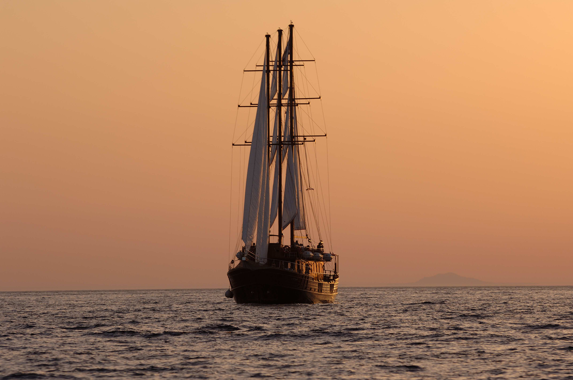 The end of the excursion comes on sunset time. The boat sets sails and the sun dives into the sea. This is the most unforgettable experience. Your trip to Santorini in this sanctuary of romance is going to be in your memories and your hearts forever!